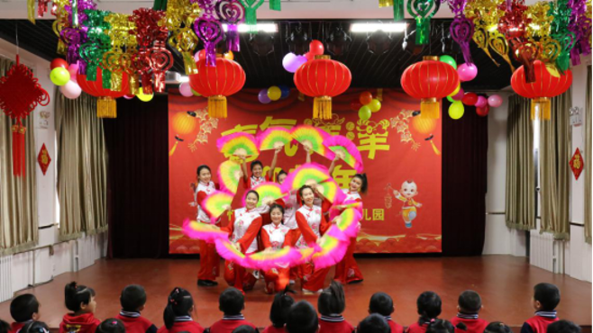 活动前,各班教师有计划的为幼儿渲染新年欢乐、喜庆的节日氛围,幼儿园根据各年龄幼儿特点组织新年节目编排。教师将亲子制作的中国风剪纸、吉祥灯笼、五彩拉花等富有中国民族气息的环境布置出来,使整个幼儿园洋溢着新年的喜气。活动中,教师舞蹈《欢天喜地》将演出气氛推向高潮,幼儿表演的舞蹈、歌曲和三句半等节目