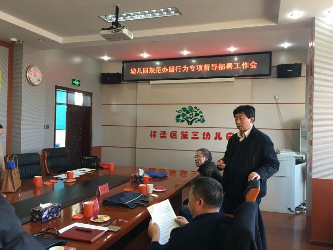 为贯彻落实《国务院教育督导委员会办公室关于开展幼儿园规范办园行为专项督导检查紧急通知》,结合我区幼儿园督导工作实际,区政府督导室组织部分新聘任的学前教育责任督学及5个幼儿园责任区组长,在怀柔三幼召开幼儿园规范办园行为专项督导现场会暨工作培训会。区督导室科长、主管幼儿园督导工作督学参会。