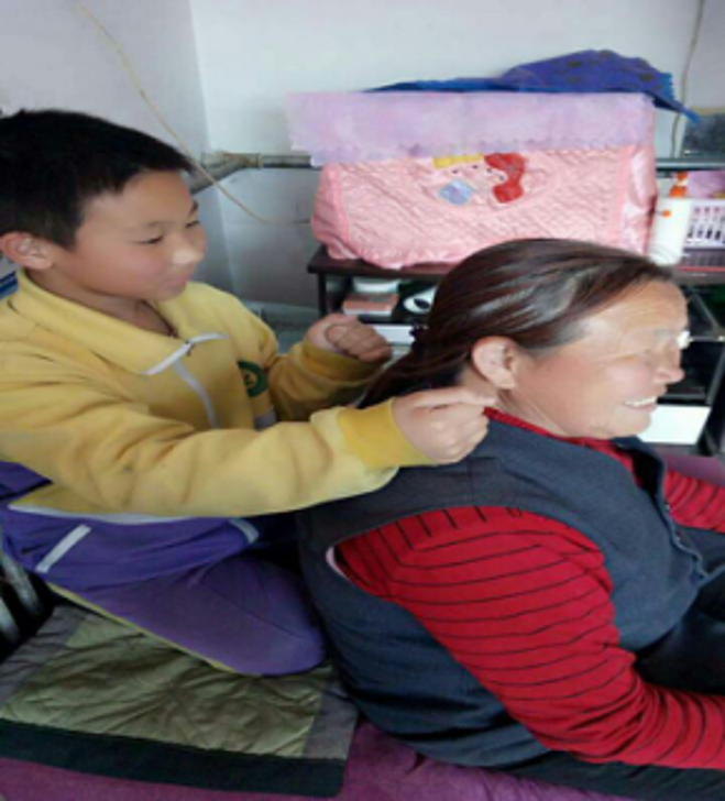 宋善成有一颗洁白无瑕、善良真诚的心灵。对亲人他是一个孝敬长辈的孩子。在家里,他经常帮助家人做一些力所能及的家务活。