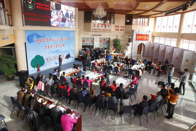 11月12日,在怀柔学生活动管理中心举办2017年北京市郊区校外教育机构市级观摩活动课怀柔现场,中国书画家协会马乾、清华大学美术学院教授范天明、北京特级教师李永亮等6名画家亲临现场,与怀柔学管中心写意花鸟画班32名学员联袂泼墨,共同创作写意花鸟画作品。北京市校外教研室教研员、市校外“三个一”优质项目评委组成员、大兴少年宫专家及家长90多人现场观摩。
