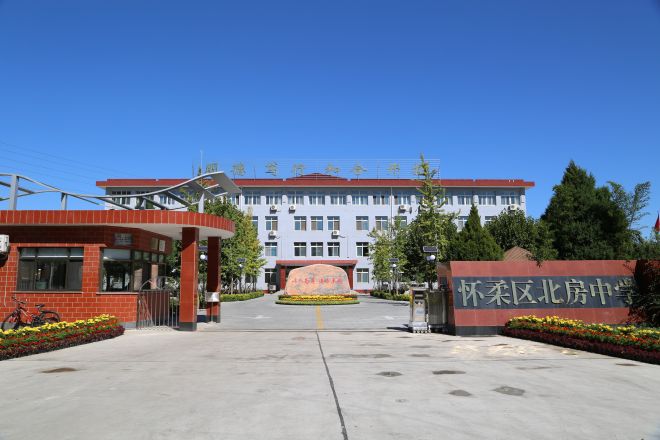 北京市怀柔区北房中学,始建于1961年,原名驸马庄中学, 2002年由旧址迁到现址,是一所历史悠久、充满活力的初中校,现有16个教学班,334名学生,83名教职工。占地面积约45亩,建筑面积8450平米。学校教学设备先进,办学条件优越,教育教学质量优秀。校园内雕塑凉亭设计精巧,回廊喷泉充满活力,绿荫遍地、书香满园。