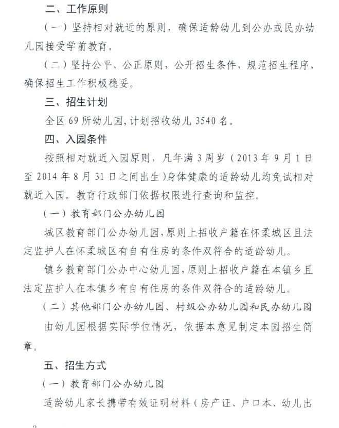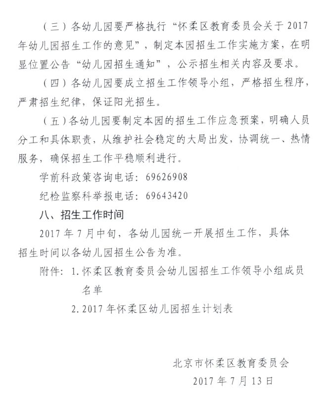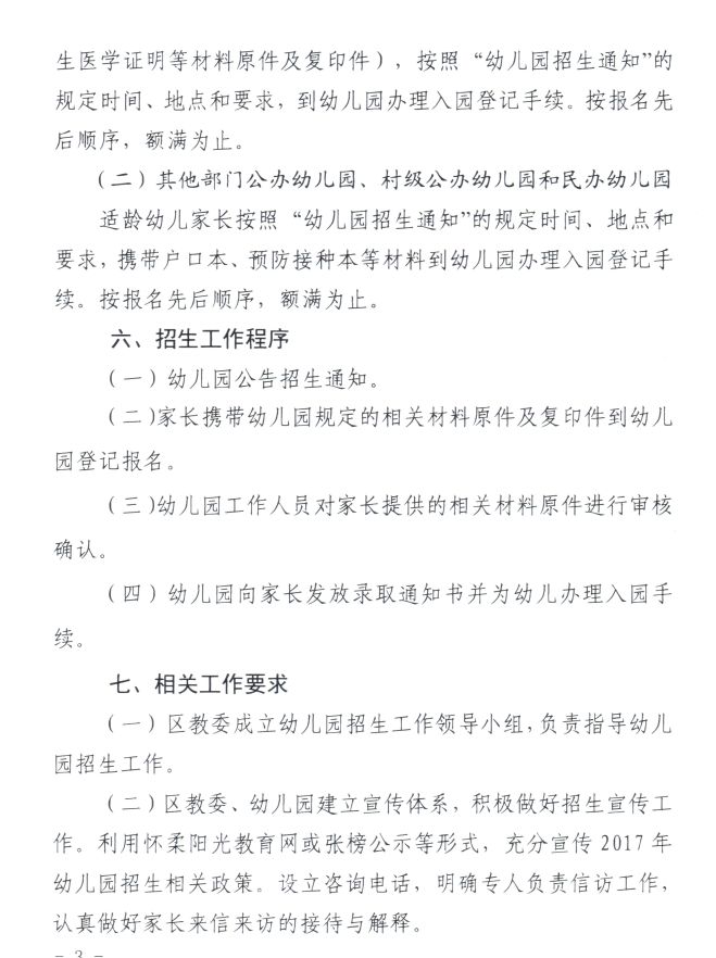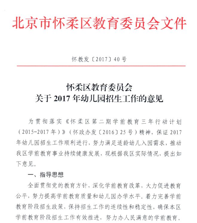 怀柔区教育委员会关于2017年幼儿园招生工作的意见