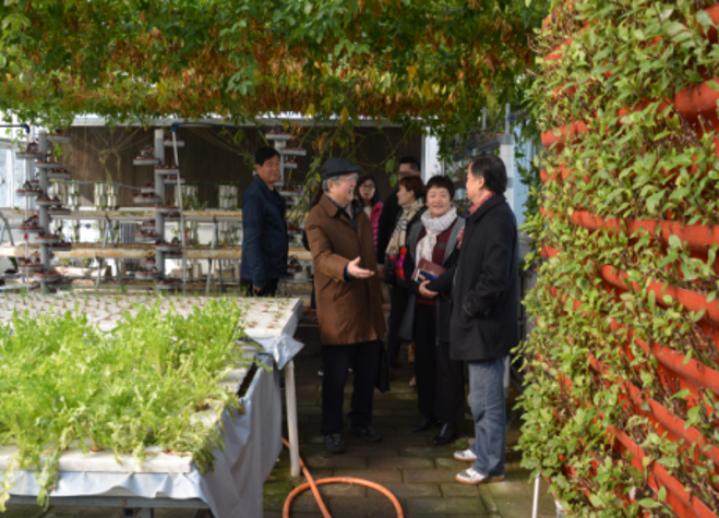 陶院长一行在学校科技主任汪树军的陪同下实地考察了庙城学校科技园。参观过程中,科技园内的“老农具展”让领导专家们感悟到了乡土气息,创新寓教的科技长廊让领导专家们流连驻足,温室大棚内“红薯插秧育苗”更是让专家赞叹不已。学校科技园经师生不断总结试验后,创新了育苗方法,利用秋季挖红薯后的废秧扦插,管理方法既简单,成活率、产量又高,还做到了废物利用。袁教授说传统红薯育苗法是每年要预留5%的红薯作为种薯,储存一段时间后再炕,程序不仅繁琐,而且种薯腐烂较多,成活率较低,秧苗扦插很有推广价值。