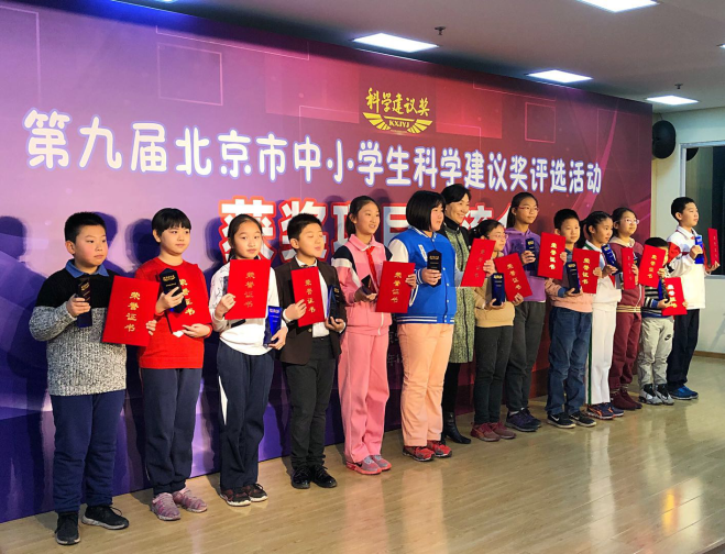 北京市中小学生科学建议奖是北京市教委在2008年为了引导、鼓励广大中小学生积极为北京城市建设献计献策而设立的,迄今已连续成功举办九届,吸引了上万名学生的广泛参与。共收到参评报告6340份,共评选科学建议奖和科学建议提名奖180项,部分建议经市人大代表、政协委员提交北京市两会变成了北京市政策。