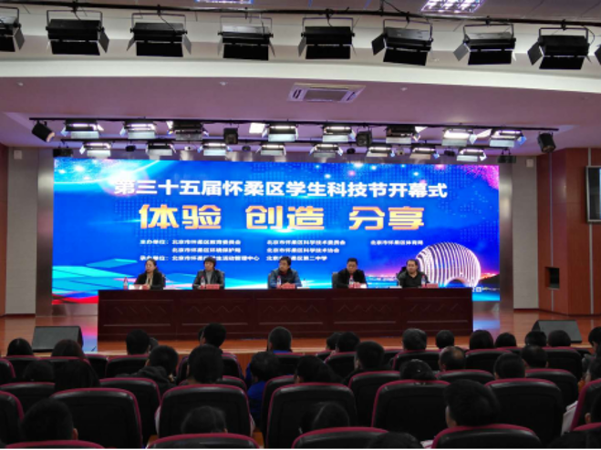 12月22日,以 “体验·创造·分享”为主题的第三十五届学生科技节在第二中学隆重开幕。区科协副主席胡艳春、区体育局副局长张文宪、区教委副主任李拥政以及全区38所中小学主管科技教育的领导与老师代表、学生代表参加了此次活动。